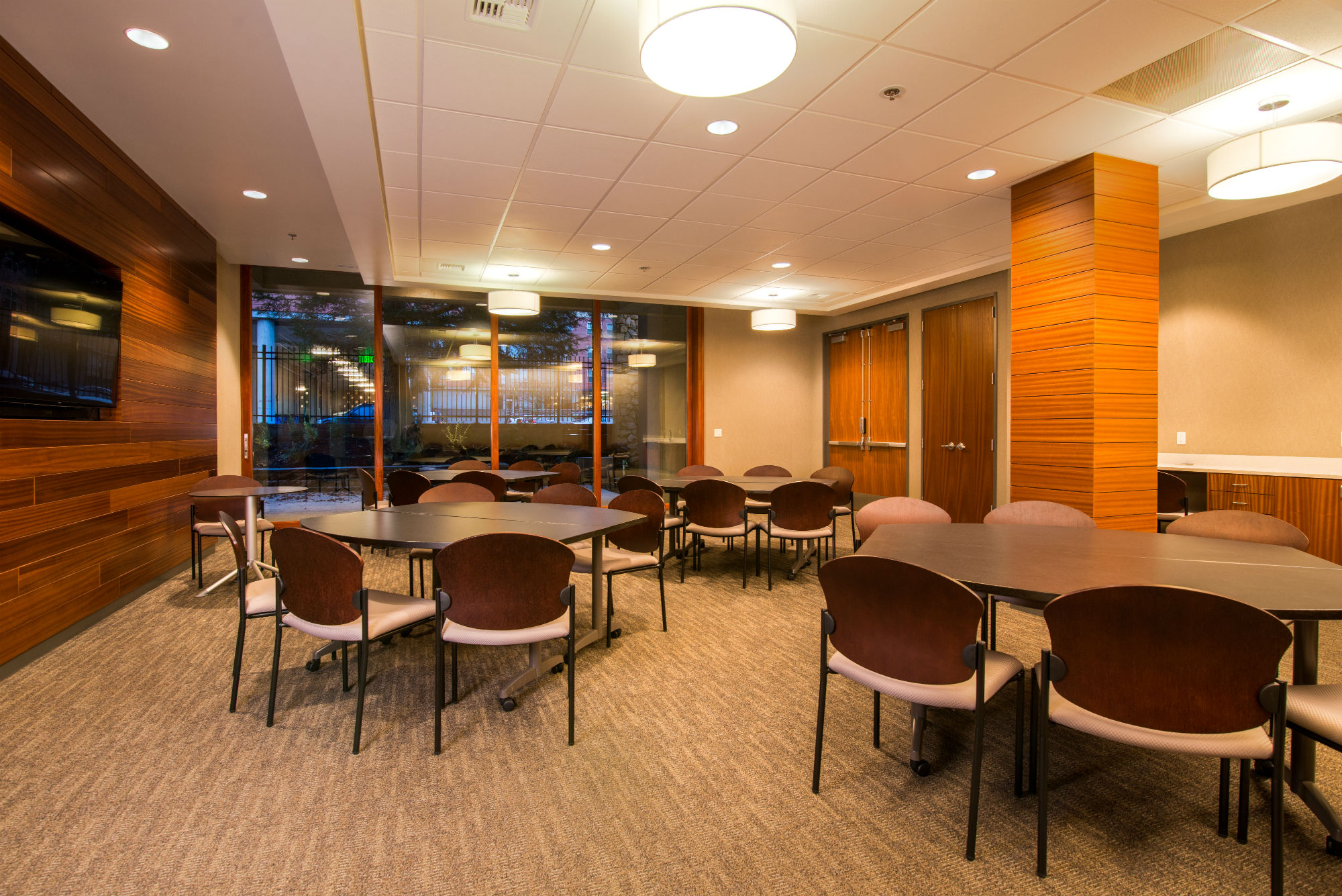 Ideally situated in the heart of downtown Vancouver (see map), the Community Room in the Esther Short Building offers a unique setting for your next event or meeting. Ideal for small to mid-sized groups, the room offers tasteful and modern decor, the HDMI connectivity for multi-media presentations and ample space for food preparation and presentation. The Community Room has been utilized for a variety of events and can be attractively configured for trainings, team building, board meetings, evening receptions, social events, presentations, workshops, and more. The room is elegantly designed and versatile, making it the perfect backdrop for events, from casual to upscale. A full sliding glass wall opens to a beautifully landscaped and furnished private courtyard complete with comfortable seating and a fire pit. The Community Room at the Esther Short Building offers a dynamic venue for indoor and outdoor activities unlike anything else available in the area.